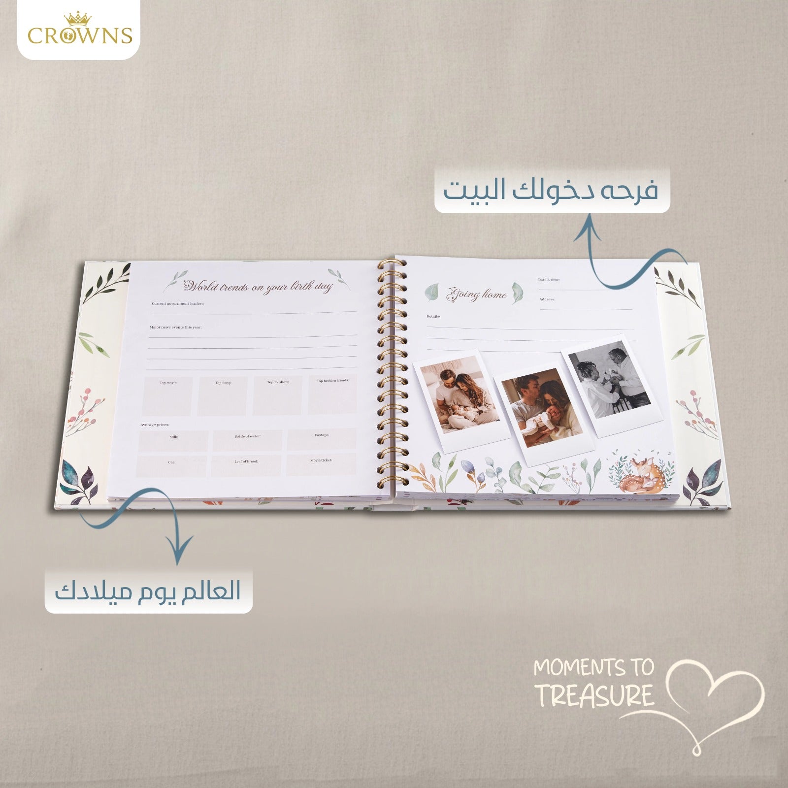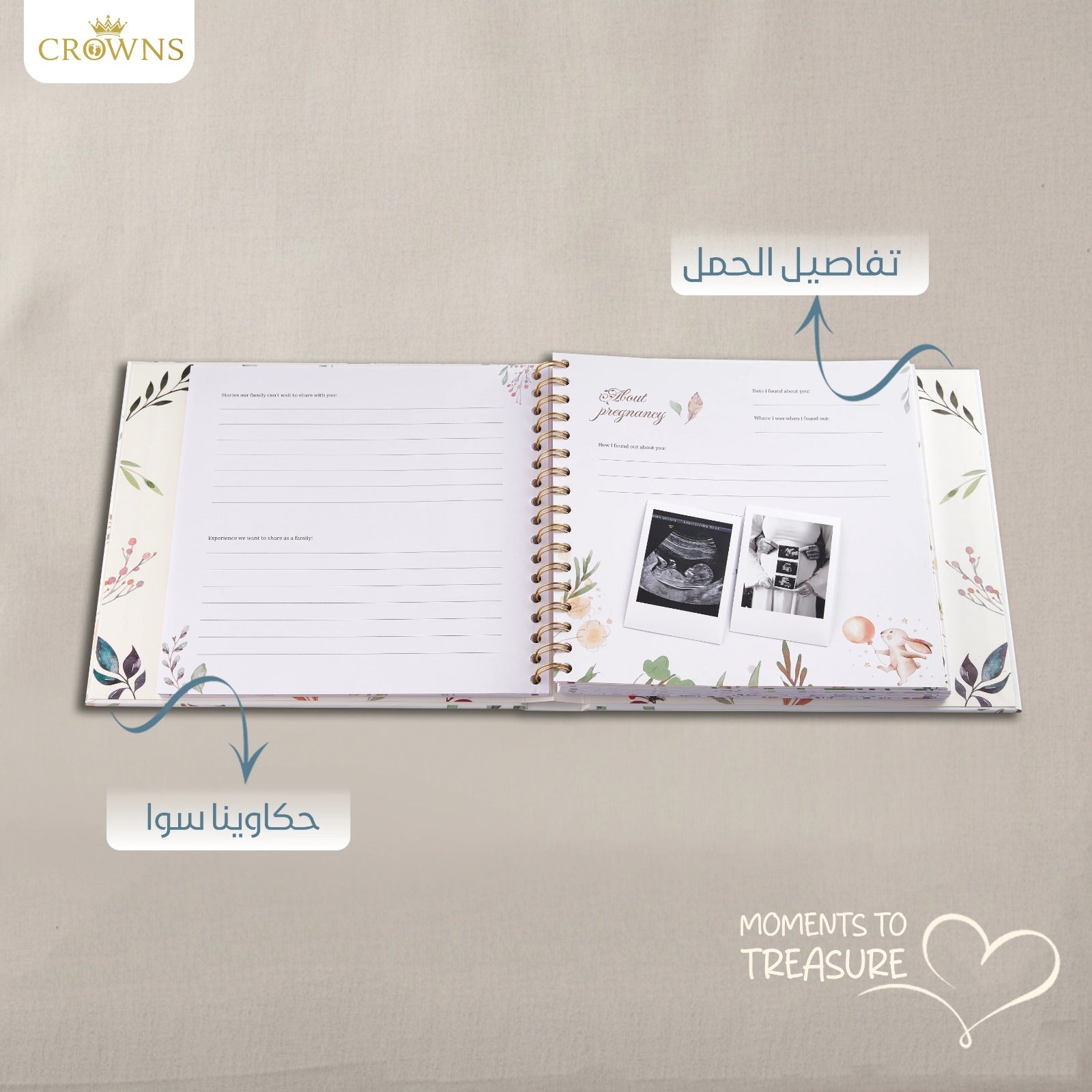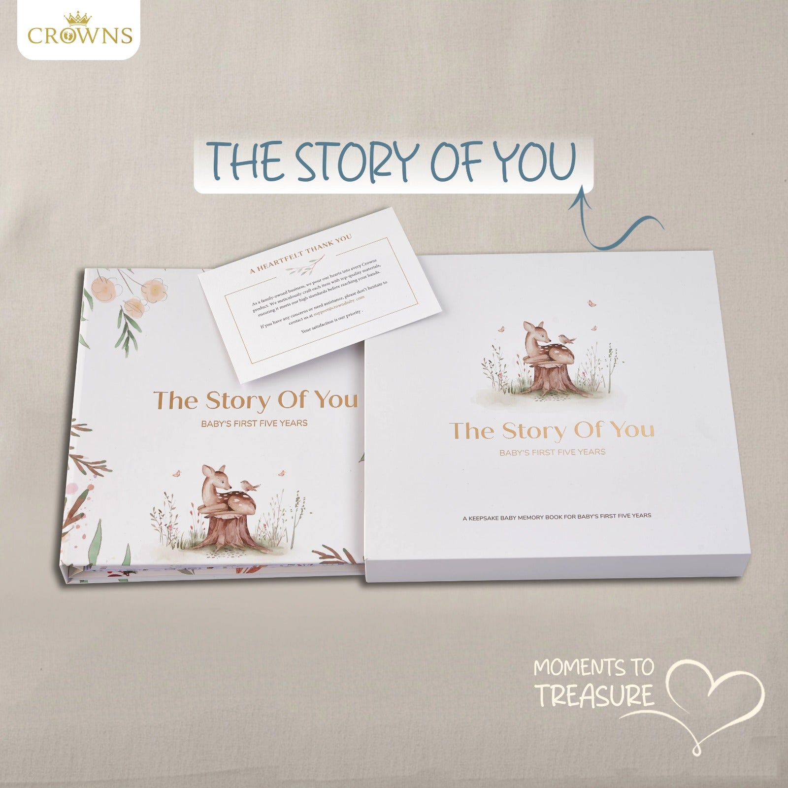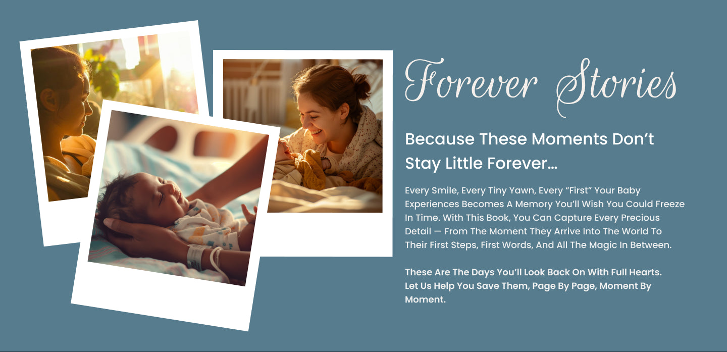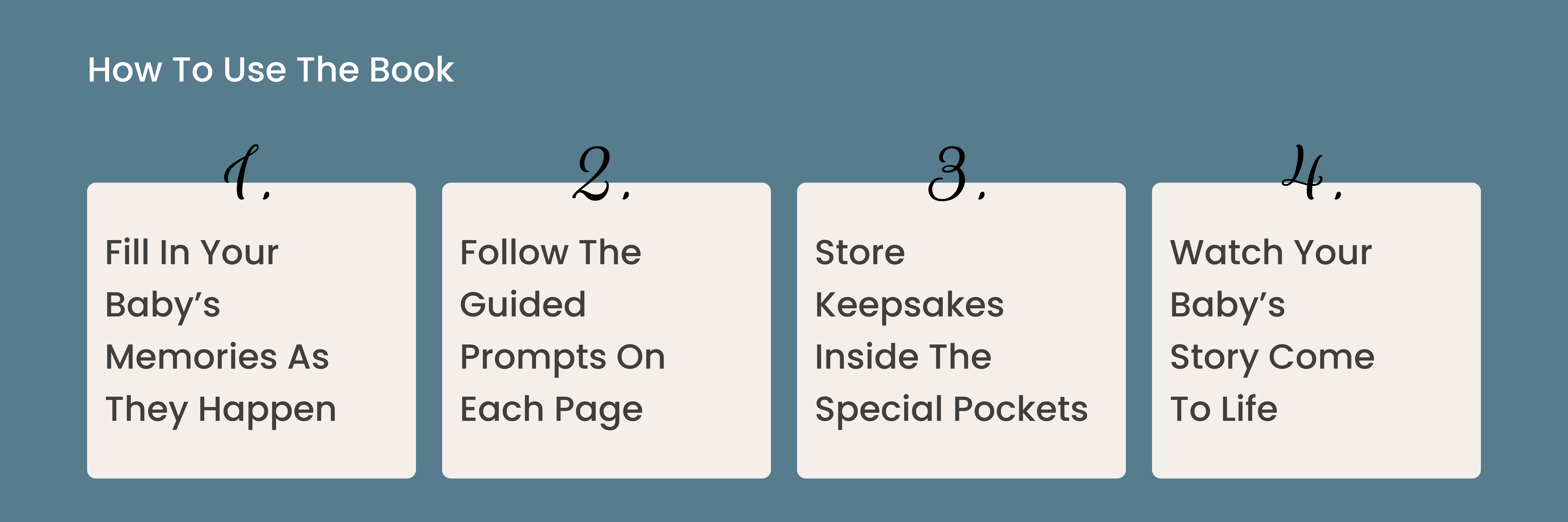 Our book is crafted to last a lifetime as a family heirloom. It covers the first five years of your baby's journey with guided prompts, beautiful illustrations, and high-quality, durable pages that won’t fade or tear. It’s designed to be simple, emotionally resonant, and stress-free to fill out.