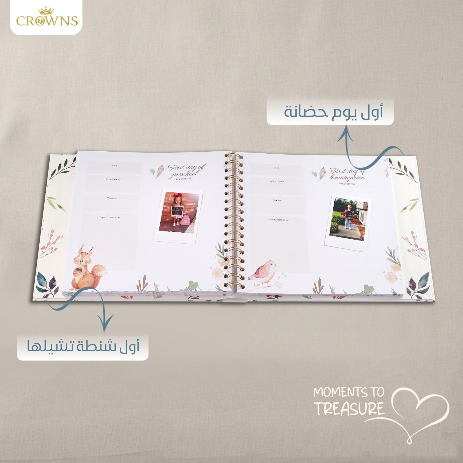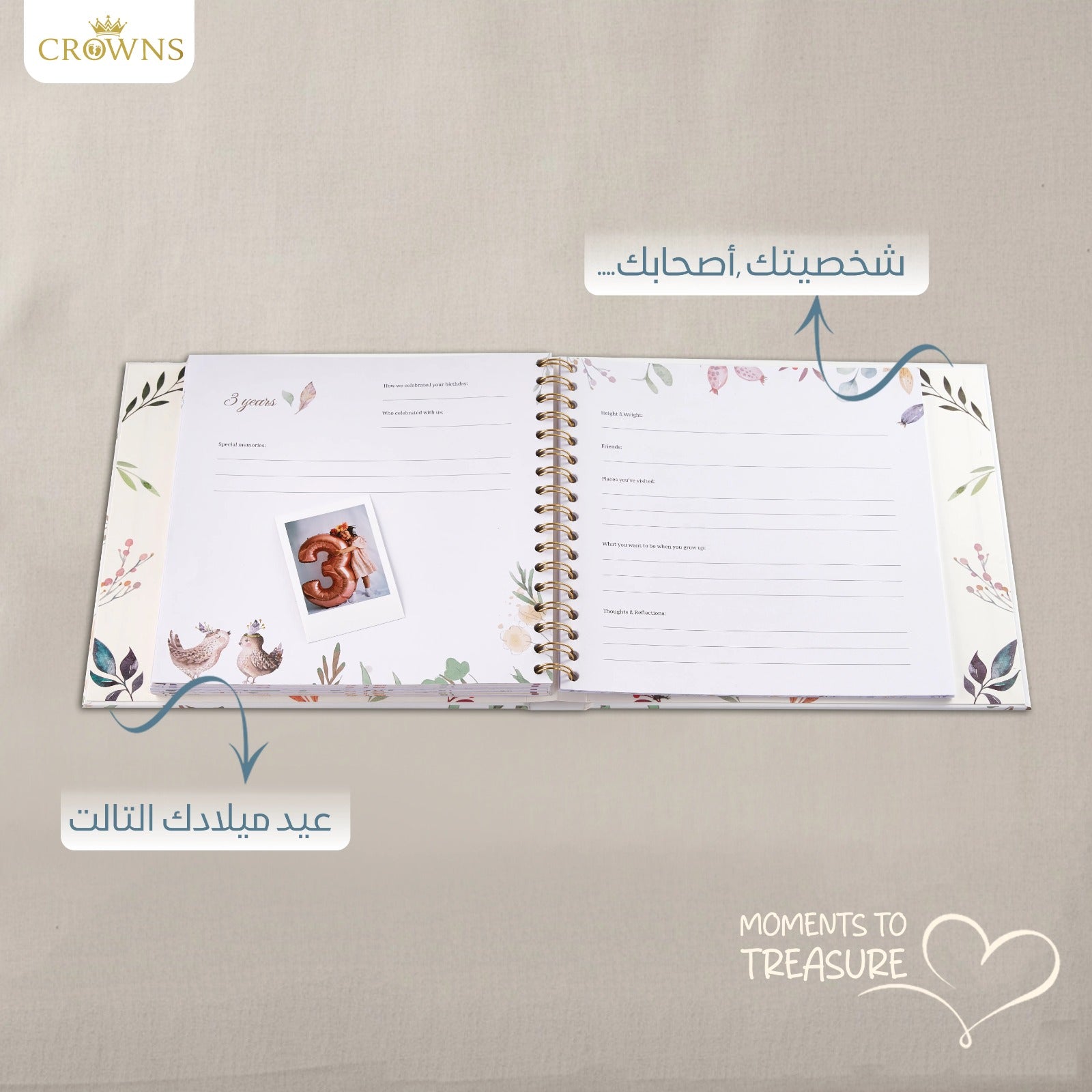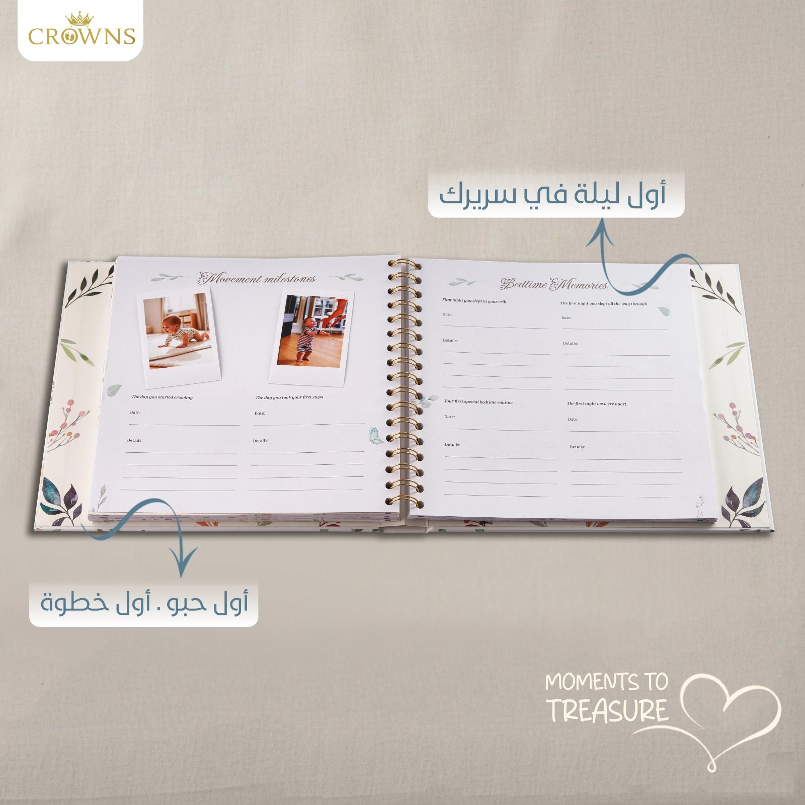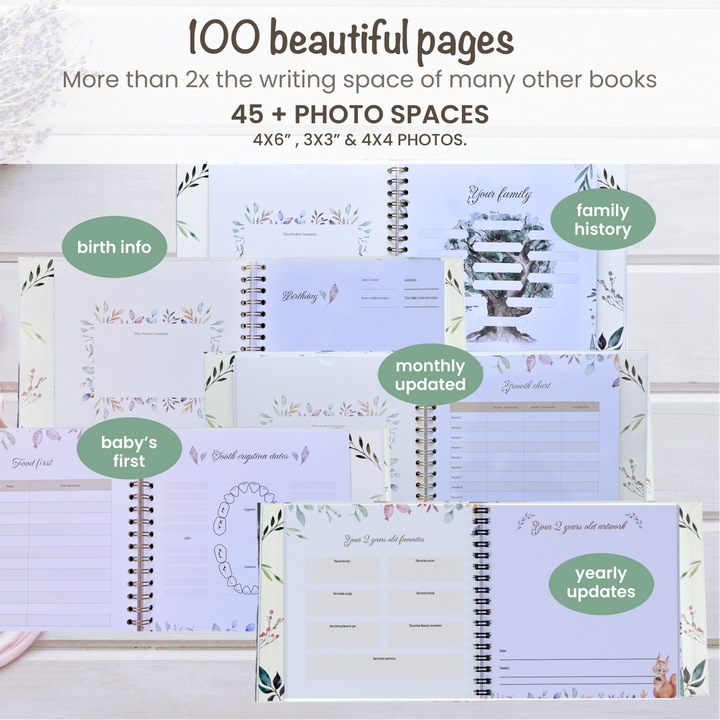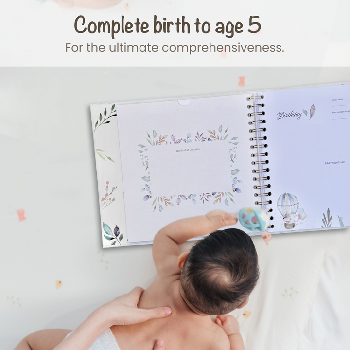The book is specifically designed to thoroughly document your child’s journey with guided prompts from birth up to five years of age. It covers all major milestones that occur during this period.